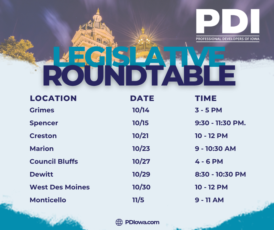 PDI holds legislative forums across the State of Iowa to bring together legislators, economic developers, utility companies, engineering firms, developers and development partners to discuss the importance of economic growth in Iowa.